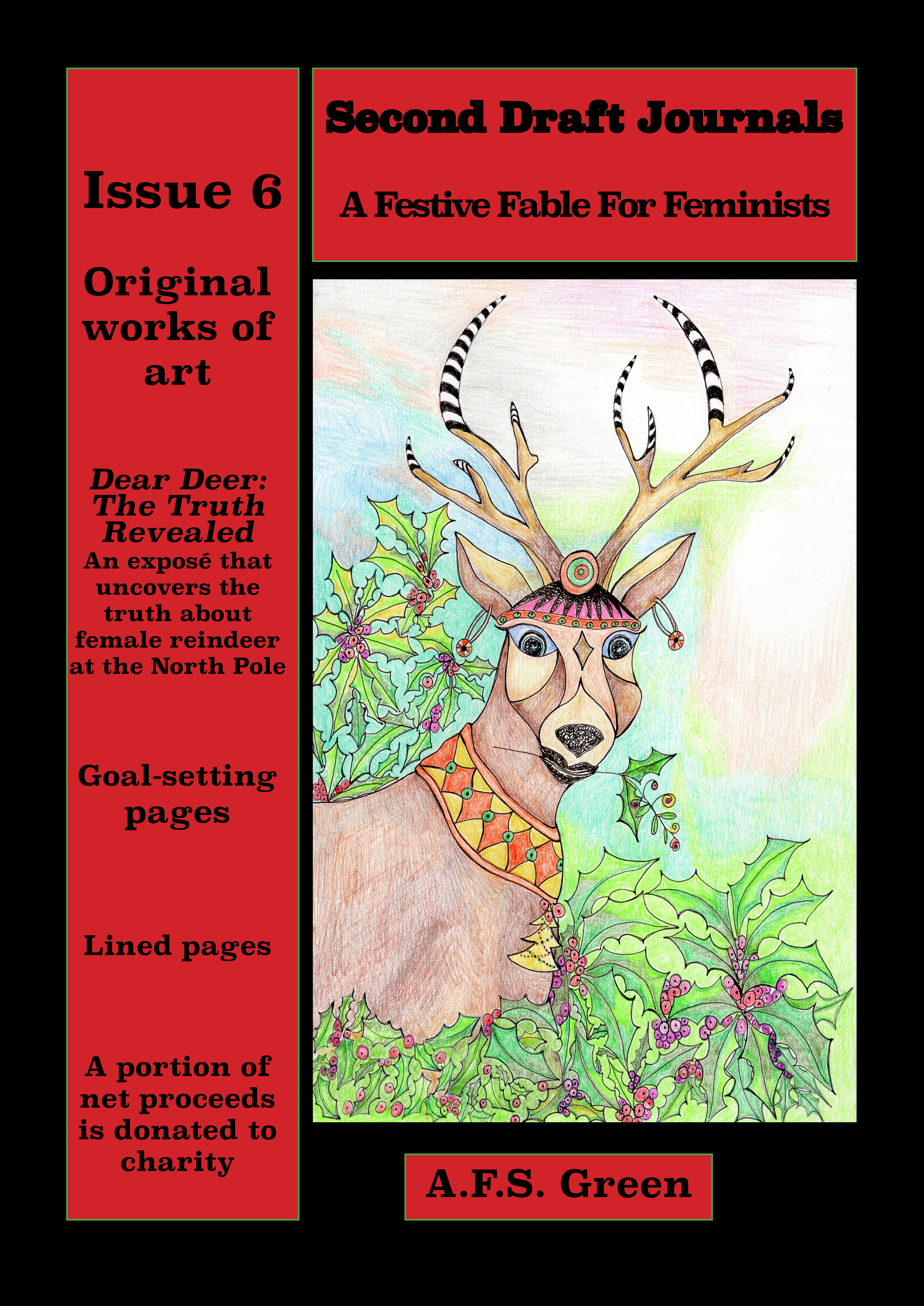 Second Draft Journals: A Festive Fable For Feminists, features a story about the unknown heroes of Christmas: female reindeer. Join Rae and her friends as they learn that Santa and his most trusted male confidants have been perpetuating the lie that male reindeer pull Santa’s sleigh. (Read the story in this issue to uncover the truth!)